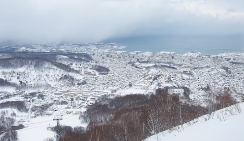 눈 덮인 오타루의 탁 트인 전망은 그야말로 환상적입니다.